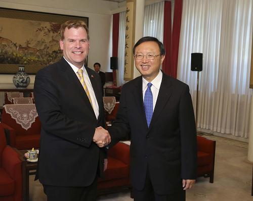 بكين 4 يوليو 2013 (شينخوا) التقى عضو مجلس الدولة يانغ جيه تشي بوزير الخارجية الكندي جون بايرد اليوم (الخميس).
