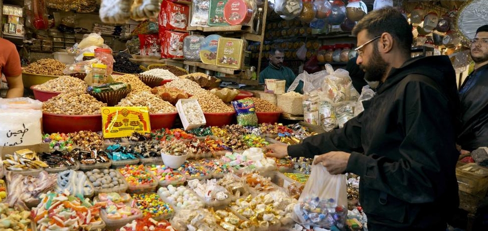 في الصورة الملتقطة يوم 16 فبراير 2026، رجل يشتري الحلوى قبل حلول شهر رمضان في العاصمة العراقية بغداد.