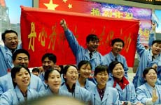 أعلن تشن هذا النبأ السار في مركز بكين الفضائى للقيادة والتحكم ، حيث قوبل بتصفيق حاد من العاملين بالمركز.