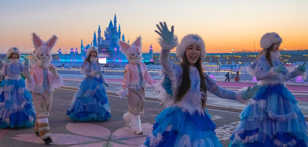 منحوتات جليدية وثلجية تزين شتاء "مدينة الربيع في شمال البلاد"