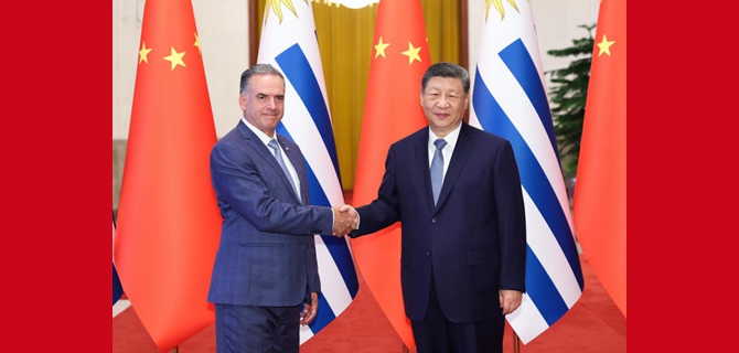 أجرى الرئيس الصيني شي جين بينغ محادثات مع رئيس جمهورية أوروغواي الشرقية ياماندو أورسي في بكين اليوم الثلاثاء.
