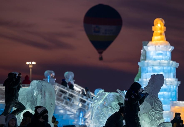 فنانون يستعرضون مهارات النحت على الجليد شمال شرقي الصين