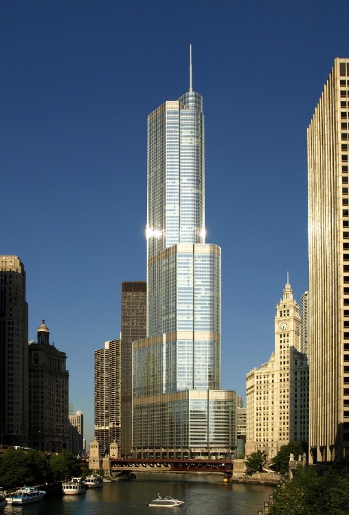 المرتبة العاشرة: برج وفندق ترامب انترناشونال في مدينة شيكاغو الأمريكية، ويبلغ ارتفاعه 423 مترا ويتألف من 92 طابقا
