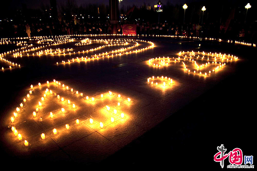 أناس تتوافد على ميدان "شيداي" بمدينة داتشينغ التابعة لمقطعة هيلونغجيانغ في شمال شرق الصين للوقوف حداداً على ضحايا زلزال سيتشوان في 21 ابريل 2013