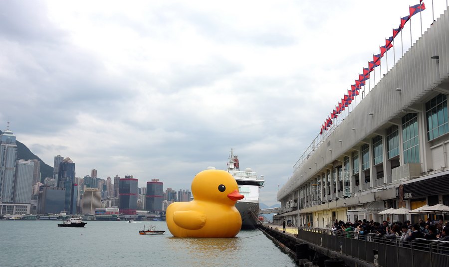 أكبر بطة مطاطية في العالم تظهر بميناء فيكتوريا في هونغ كونغ
