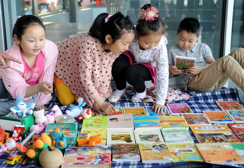 5月5日,南京市中小学生旧图书交易节在南京科技馆举行,学生们将自己的闲置教辅书、课外书、文具、玩具等带到活动现场,摆摊销售或进行交换,许多家长也陪着孩子一起参加了交易节。据主办方介绍,旧图书交易节旨在搭建旧书利用、“变废为宝”的平台,引导学生养成勤俭节约好习惯