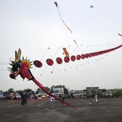 6 يونيو 2013/ شبكة الصين/ تمكن صانع طائرات ورقية يدعى وانغ تشون بو من إبداع أطول طائرة ورقية في شمال شرق البلاد، حيث يبلغ طولها 200 متر، تمثل تنين أفعواني، وحلق "التنين" أمس الأربعاء في سماء مدينة شنيانغ حاضرة مقاطعة لياونينغ شمال شرق الصين.