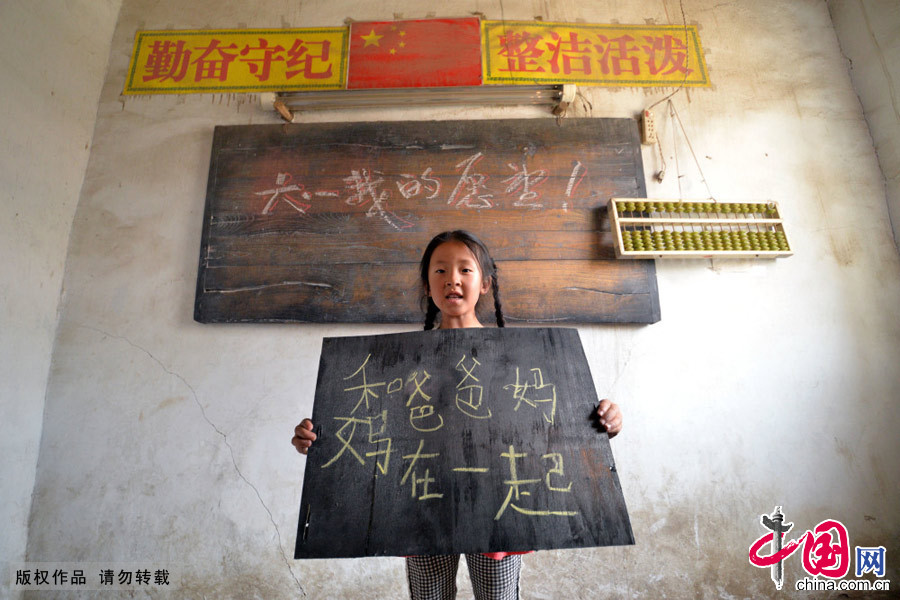 أمنية التلميذة قونغ شينغ ران (8 أعوام) :العيش مع والديها.
