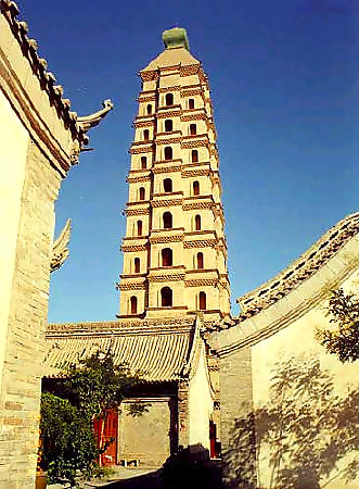 ودمر الزلزال برج هايباو في السنة الثالثة من عهد تشيان لونغ من أسرة تشينغ ، أما برج هايباو القائم فهو البرج الذي أعيد بنائه في السنة الثالثة والأربعين من عهد تشيان لونغ من أسرة تشينغ (1778م). وفي عام 1961م، وأدرجه مجلس الدولة الصيني في الدفعة الأولي من الوحدات الأثرية الثقافية الرئيسية المحمية على المستوي الوطني في عموم الصين. إن برج هايباو بني من الطوب الأزرق و به سلم خشبي ومكون من تسع طبقات ويبلغ ارتفاعه أربعة وخمسين مترا. وملامحه جميلة وزواياه واضحة وخطوطه سلسة وطبقات واضحة فيتمتع بأسلوب فريد عن البروج القديمة الصينية. ويعتبر من المناظر الجميلة الثمانية فى نينغشيا.