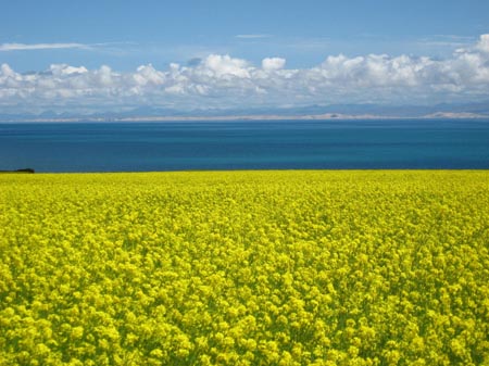 بحيرة تشينغهاي في مقاطعة تشينغهاي.يمكن زيارتها في أي وقت ممكن فهي تحافظ على جمالها طوال فصول السنة.