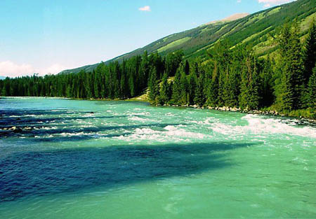 بحيرة كاناس في منطقة شينجيانغ الويغورية الذاتية الحكم. أمثل فصل لزيارتها: من يوليو الى سبتمبر