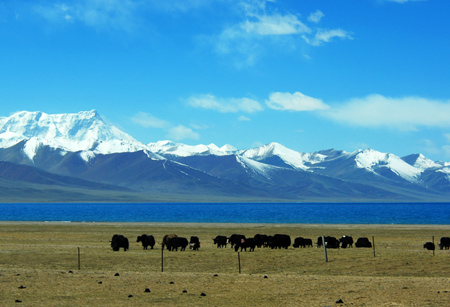 بحيرة ناموتسو في منطقة التبت الذاتية الحكم. أمثل فصل لزيارتها: من يوليو إلى سبتمبر