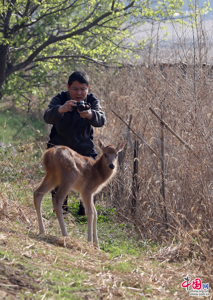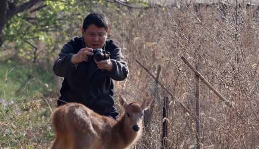 قوه قنغ يلتقط صورة لأيل (تصوير: هو جينغ رن)