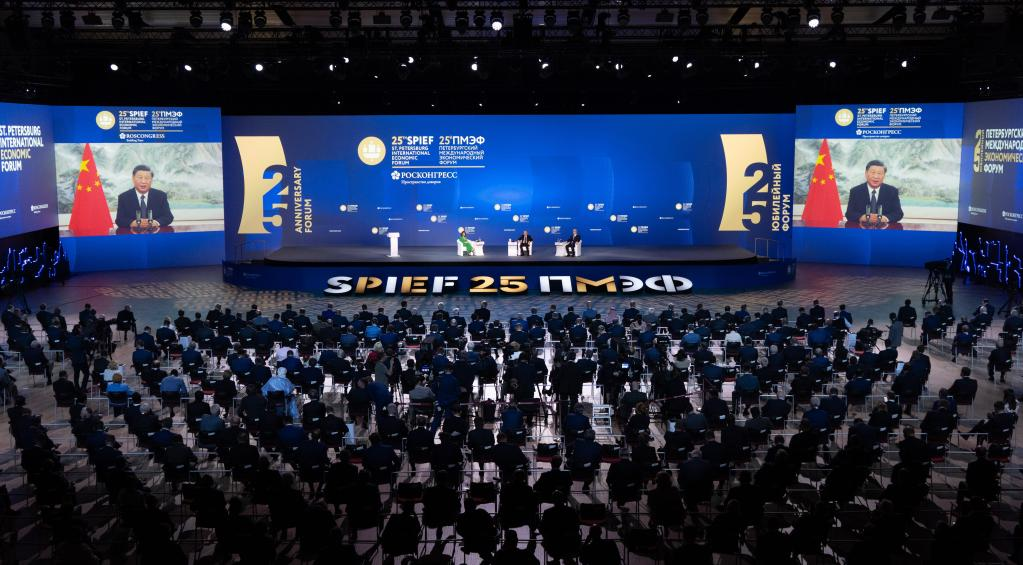 الرئيس الصيني يلقي كلمة أمام منتدى سانت بطرسبرغ الاقتصادي الدولي الخامس والعشرين
