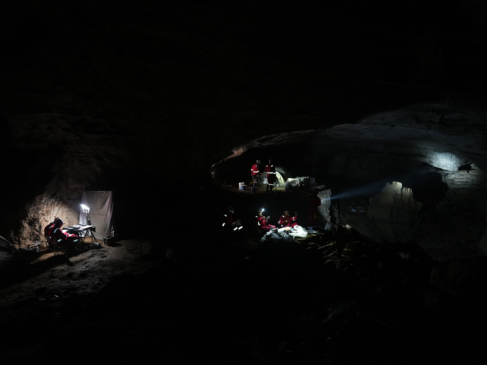 في الصورة الملتقطة خلال شهر ديسمبر 2025، جانب من المخيم الرئيسي لرواد فضاء خضعوا لتدريبات في الكهوف. هذا وأكمل 28 رائد فضاء أول مهمة تدريب في الكهوف استمرت قرابة شهر في بلدية تشونغتشينغ بجنوب غربي الصين.