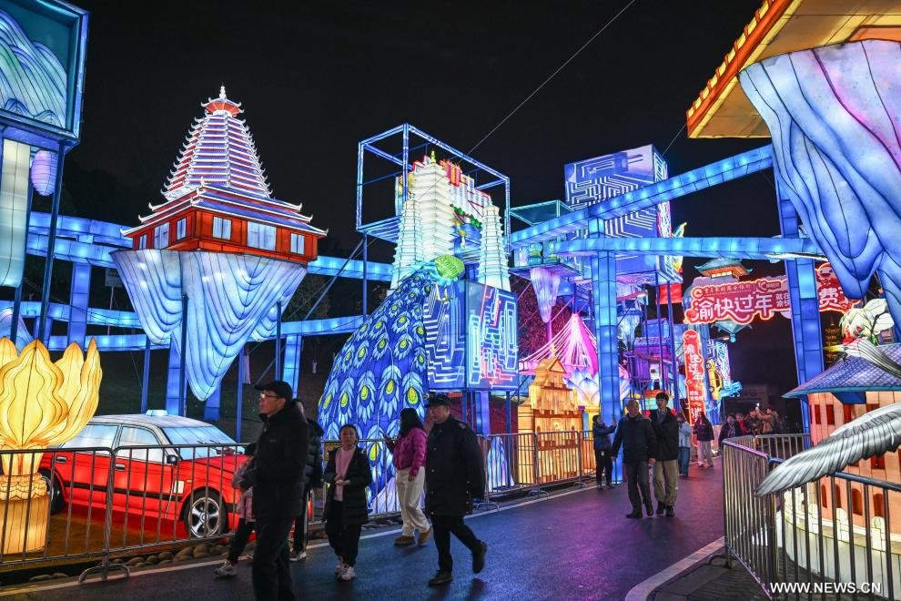 تشونغتشينغ 2 فبراير 2026 (شينخوا) في الصورة الملتقطة يوم 30 يناير 2026، أناس يزورون مهرجان الفوانيس في حديقة معرض البستنة في بلدية تشونغتشينغ بجنوب غربي الصين.
