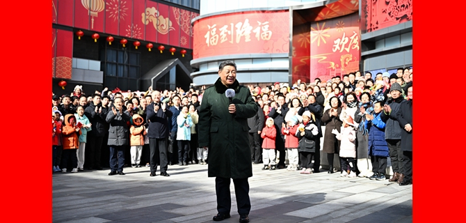 بكين 10 فبراير 2026 (شينخوا) قام الرئيس الصيني، شي جين بينغ، بزيارة المسؤولين على المستوى الأولي والمقيمين في بكين خلال جولة تفقدية استمرت يومين من أمس (الاثنين) إلى اليوم (الثلاثاء)، حيث قدّم التهاني بمناسبة عيد الربيع إلى أبناء الشعب الصيني في الداخل والخارج قبيل حلول العيد.