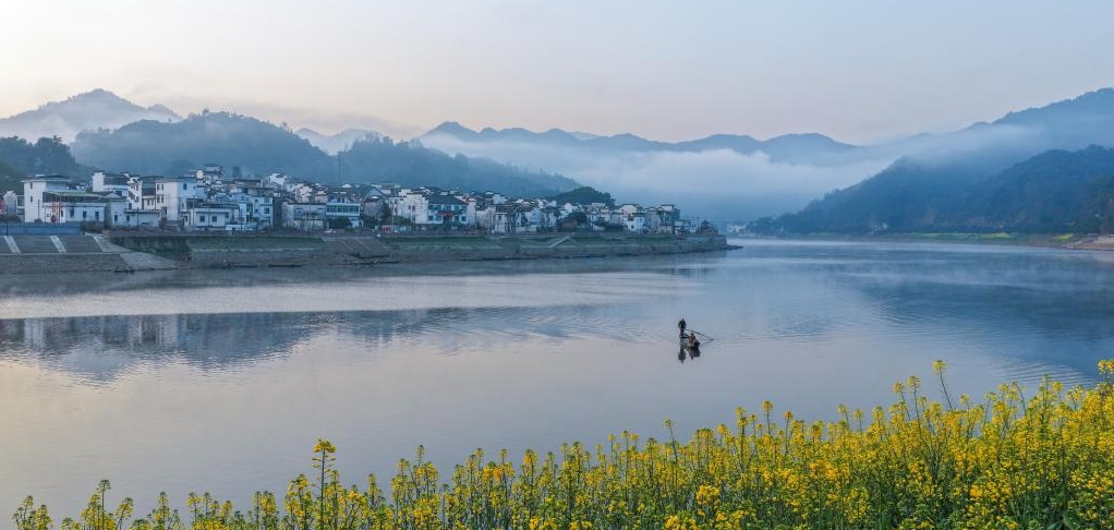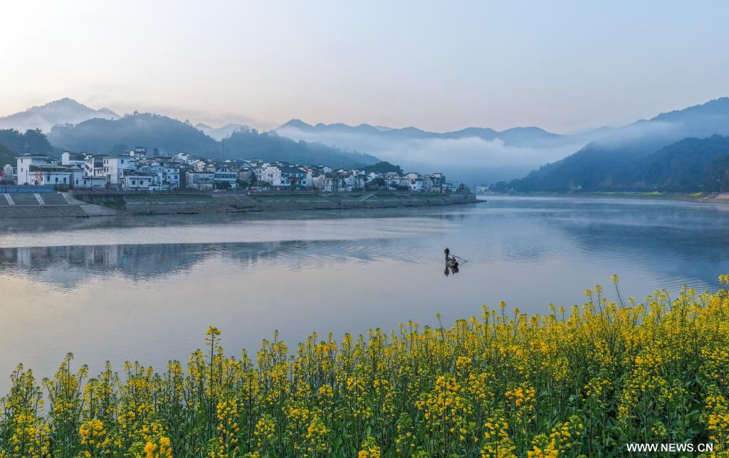 شهشيان 19 مارس 2026 (شينخوا) في الصورة الملتقطة يوم 11 مارس 2026، مشهد صباحي على طول نهر شينآن في محافظة شهشيان بمدينة هوانغشان في مقاطعة آنهوي شرقي الصين. ومع حلول فصل الربيع، دخلت أزهار اللفت المنتشرة على ضفاف نهر شينآن، وهو ممر مائي غني بالتنوع البيولوجي يمتد من مقاطعة آنهوي إلى مقاطعة تشجيانغ، موسم الإزهار.